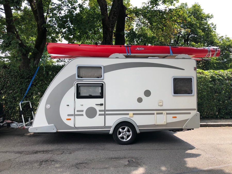 Meine Frau redete mir die Idee eines Tipee aus und so entschied ich mich für einen Wohnwagen.